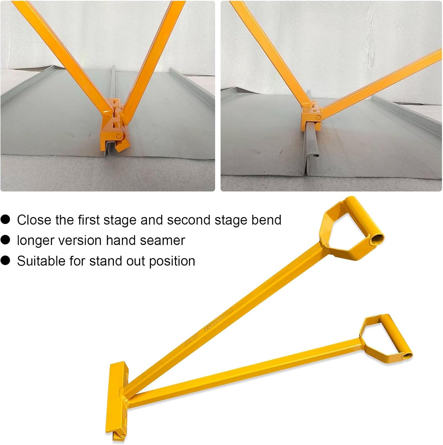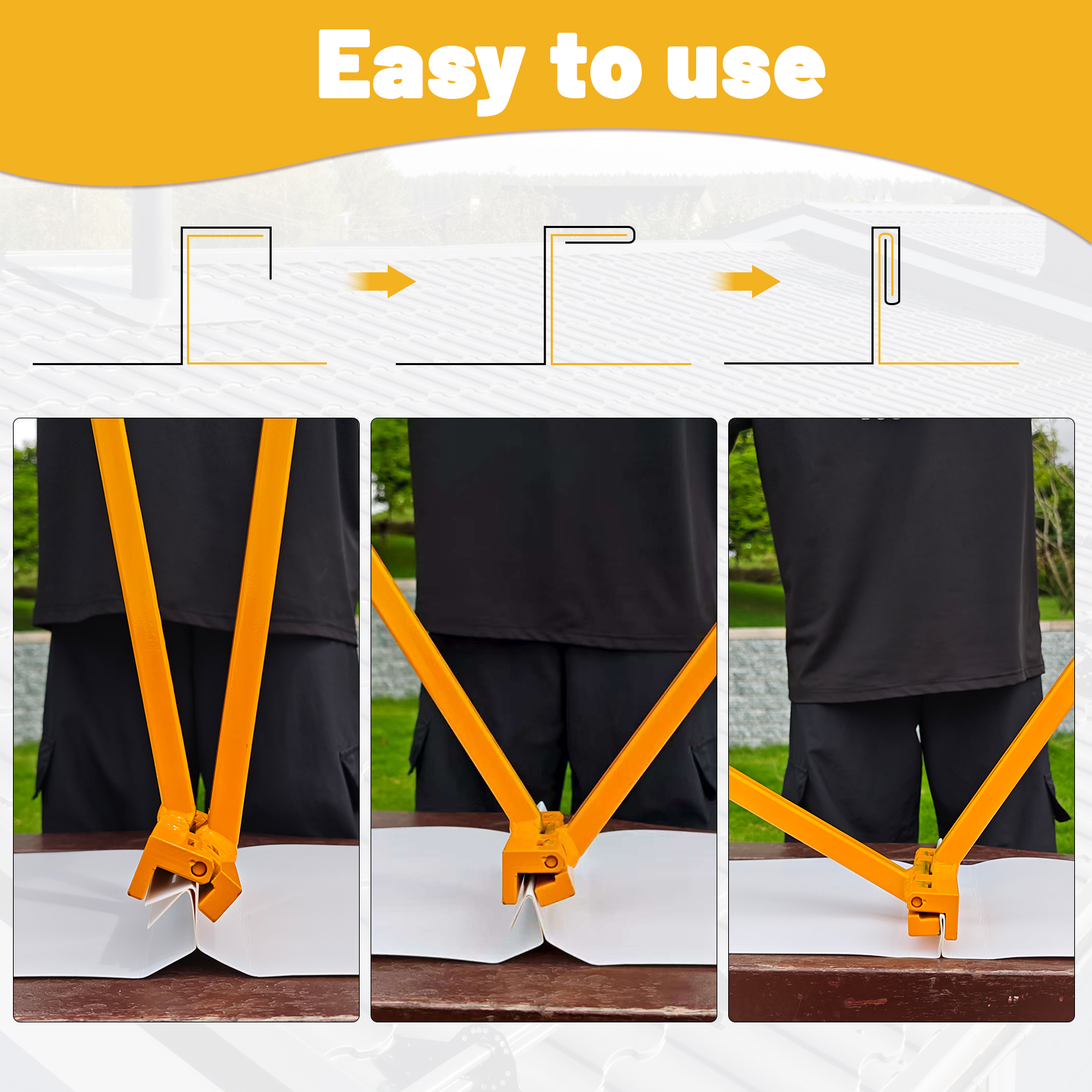 It allows seams to close easily, quickly, cleanly and effortlessly from a standing position. Throughout the process, your hands remain on the tool and in a comfortable bending position for maximum speed and efficiency when working on the roof. - Convenient and fast: One tool is all you need to complete the entire folding process.